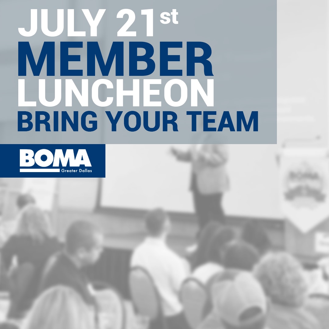 Celebrate your team at the Annual Bring Your Team Member Luncheon, BOMA Greater Dallas’ signature member event of the year. Real estate companies are encouraged to bring their executives, property managers, facility managers, engineers, and administrative staff to build a more cohesive team and get inspired. Allied member companies are also invited to join the fun!